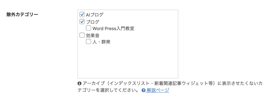 一番下に除外カテゴリーというものがあって、これにチェックが入っていたのだ。多分PV表示させたくないからいじったんだろうと思う。