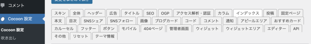 管理画面のCocoon設定 → インデックスのタブを押す